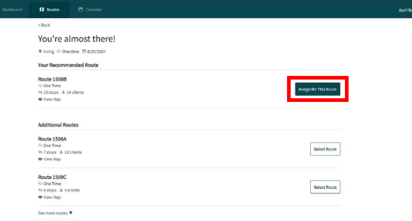 Click “Assign Me This Route” and you’re done!