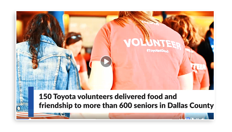 Over the past year, Toyota partnered with VNA Meals on Wheels to reach more seniors in need of a nutritious meal, further the services that Meals on Wheels volunteers provide and leverage technology to improve health outcomes for some of the most vulnerable members of the North Texas community.